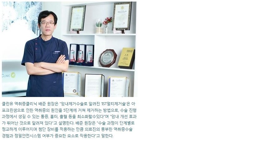 'IST멀티제거술'로 통증ㆍ흉터 최소화…초음파ㆍ특수 캐눌라ㆍ내시경 등 이용, 잔존 땀샘까지 제거 출처 : 메디소비자뉴스(http://www.medisobizanews.com) 한 겨울에도 겨드랑이에서 풍기는 땀 냄새, 흔히 이야기하는 암내로 고민하는 이들이 많다. 외국에서는 흔한 증상이지만 우리나라에서는 겨드랑이냄새가 흔치 않아 사람들의 시선을 받거나 비위생적인 사람으로 비쳐질 수 있어 당사자의 고민이 클 수밖에 없다. 이처럼 겨드랑이냄새로 특이한 냄새를 풍겨 주위 사람들을 불편하게 하고 사회생활에 지장을 주는 경우를 액취증이라 한다. 일반적으로 땀냄새가 나는 경우는 많지만, 본인만 아는 정도에 그치지 않고 타인에게도 불편함을 주는 경우도 많다. 액취증은 우리 몸에 있는 땀샘 중 아포크린샘의 과다 또는 이상분비가 원인이 되어 발생한다. 대부분 육체적 사춘기 이후로 발현되기 시작하며, 운동이나 긴장 후 더욱 증상이 심해지는 경향이 있다. 동양에서는 가족력을 보이는 예가 많지만, 환자의 20% 정도는 유전과 전혀 상관없이 진행된다. 자연적으로 사라지지는 않으며, 데오드란트 등의 제품을 사용하여 냄새를 줄이는 방식의 대처를 할 수 있지만 근원적인 해결책이 되지는 못한다. 단순히 땀냄새가 나는 정도가 아니라 액취증이라고 생각된다면 근본적인 해결을 위해 액취증수술을 고려하는 것이 바람직하다. 액취증인지 알아보기 위해서는 자가진단을 먼저 시행해 보는 것도 방법이 될 수 있다. ▲ 다른 신체부위보다 겨드랑이에 땀이 많은가 ▲ 귀속의 귀지가 축축한 성질을 띄는가 ▲ 흰옷을 입으면 겨드랑이가 누렇게 변하는가 ▲암내가 난다는 소리를 들은 적이 있는가 ▲ 가족력이 있는가 등을 확인해보고 몇 가지 이상이 해당된다면 액취증수술병원을 찾아 치료를 고려하는 것이 좋다. 암내제거수술로 알려진 'IST멀티제거술'은 아포크린샘으로 인한 액취증의 원인을 5단계에 거쳐 제거하는 방법으로, 수술 진행 과정에서 생길 수 있는 통증, 흉터, 출혈 등을 최소화할수있고, 암내 개선 효과가 뛰어난 것으로 알려져 있다. 수술 방법은 땀샘이 위치한 조직을 연화시킨 다음, 주사바늘이 아닌 고압의 공기압을 이용한 큐젯 다층마취 시스템으로 국소 마취를 진행한 뒤 본격적인 땀샘 제거 시술을 시작한다. 먼저 레이저와 초음파를 이용해 냄새의 원인이 되는 아포크린샘을 파괴하고 용해시킨 후, 특수 캐눌라를 이용해 흡입하는 과정을 거쳐 잔존땀샘까지 제거하게 된다. 마지막으로 내시경 및 육안확인 과정을 거쳐 혹시 잔존땀샘을 남아있는 경우 육안하에 직접 제거한다. 수술 과정이 단계별로 정교하게 이루어지며 첨단 장비를 적용하는 만큼 의료진의 풍부한 액취증수술 경험과 정밀안전시스템 여부가 중요한 요소로 작용한다. 액취증은 일상생활에 지장을 주거나 타인에게 불편함을 줄 수 있으므로 적극적으로 치료를 고려하는 것이 바람직하며 최근에는 과거에 비해 비교적 간단하게 수술적 치료가 가능하다.<도움말: 클린유 액취증클리닉 배준 원장> 저작권자 ? 메디소비자뉴스 무단전재 및 재배포 금지 오지혜 기자 오지혜 기자 admin@medisobizanews.com 다른기사 보기 |